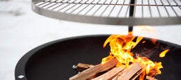 Med bålpanne Ask får du raskt et nytt samlingspunkt som kan nytes året rundt ute i det fri. Det varme, trygge bålet er perfekt å lage mat over, og med tre forskjellige nivåer på risten kan du enkelt heve eller senke den avhengig av hva slags mat du lager.